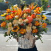 Giỏ hoa phối gam vàng kem – cam nhạt – trắng, mang cảm giác ấm áp, tươi sáng và đầy sinh khí. Hoa được sắp xếp tự nhiên, tạo khối tròn hài hòa, vừa nổi bật vừa dễ tạo thiện cảm với người nhận.