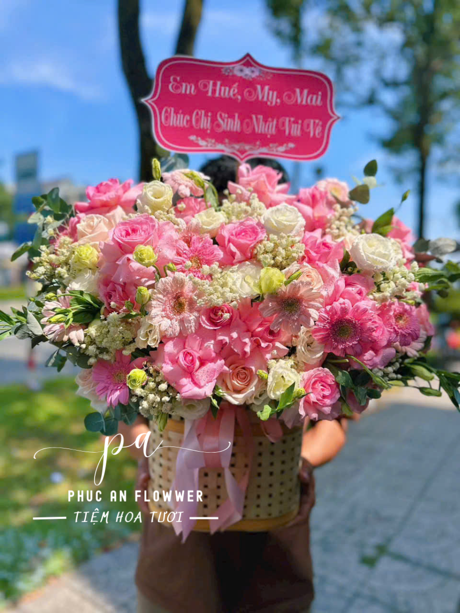“Miền Mộng Phấn Hoa” gợi nên hình ảnh của những khoảnh khắc dịu dàng và ngọt ngào. Giỏ hoa giống như một lời chúc chân thành được gửi gắm qua từng cánh hoa mềm mại, mang đến niềm vui, sự yêu thương và những cảm xúc ấm áp cho người nhận trong dịp sinh nhật hay những ngày đặc biệt.